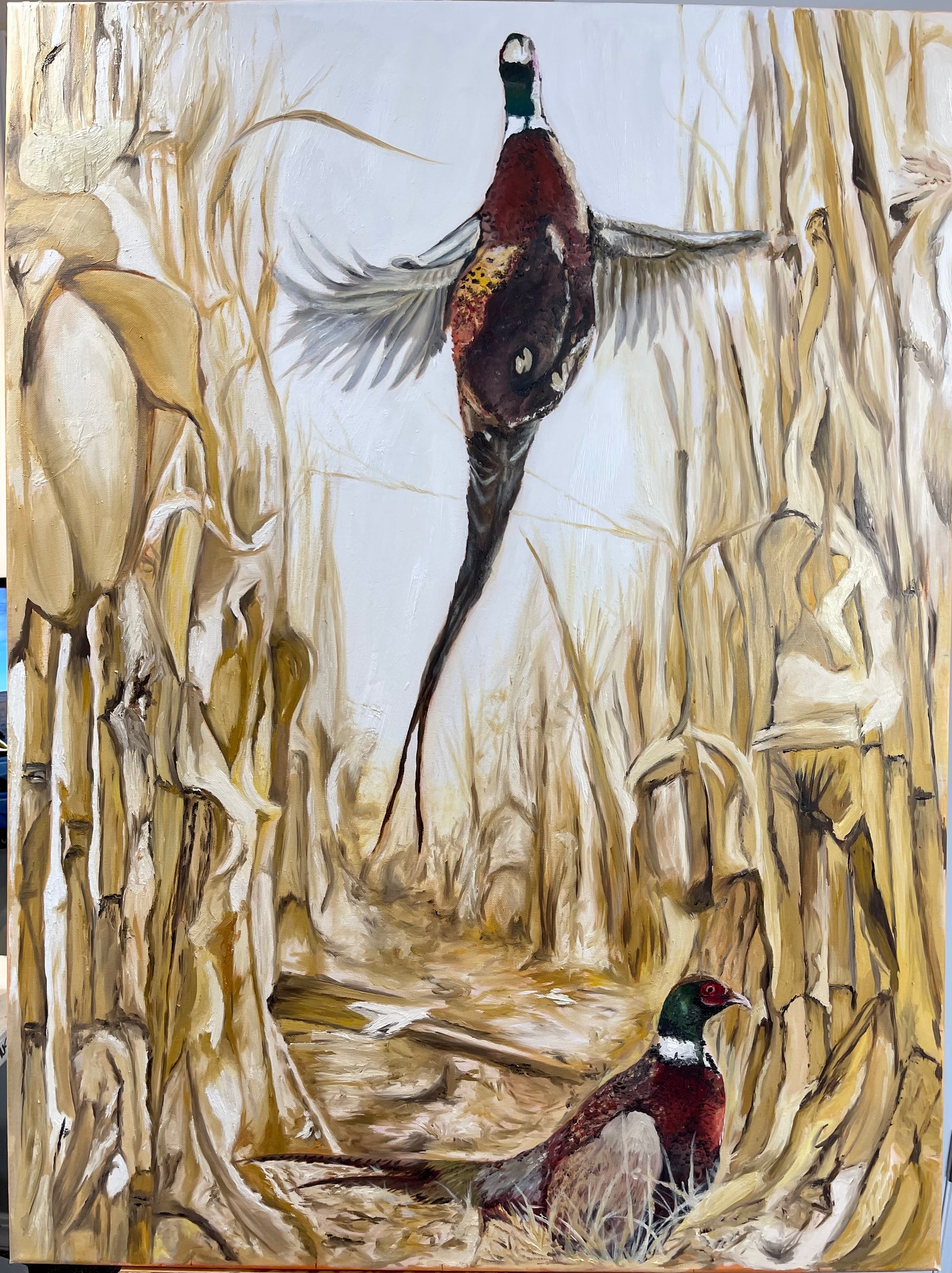 Rooster Row captures the intricate beauty and vibrant colors of pheasants