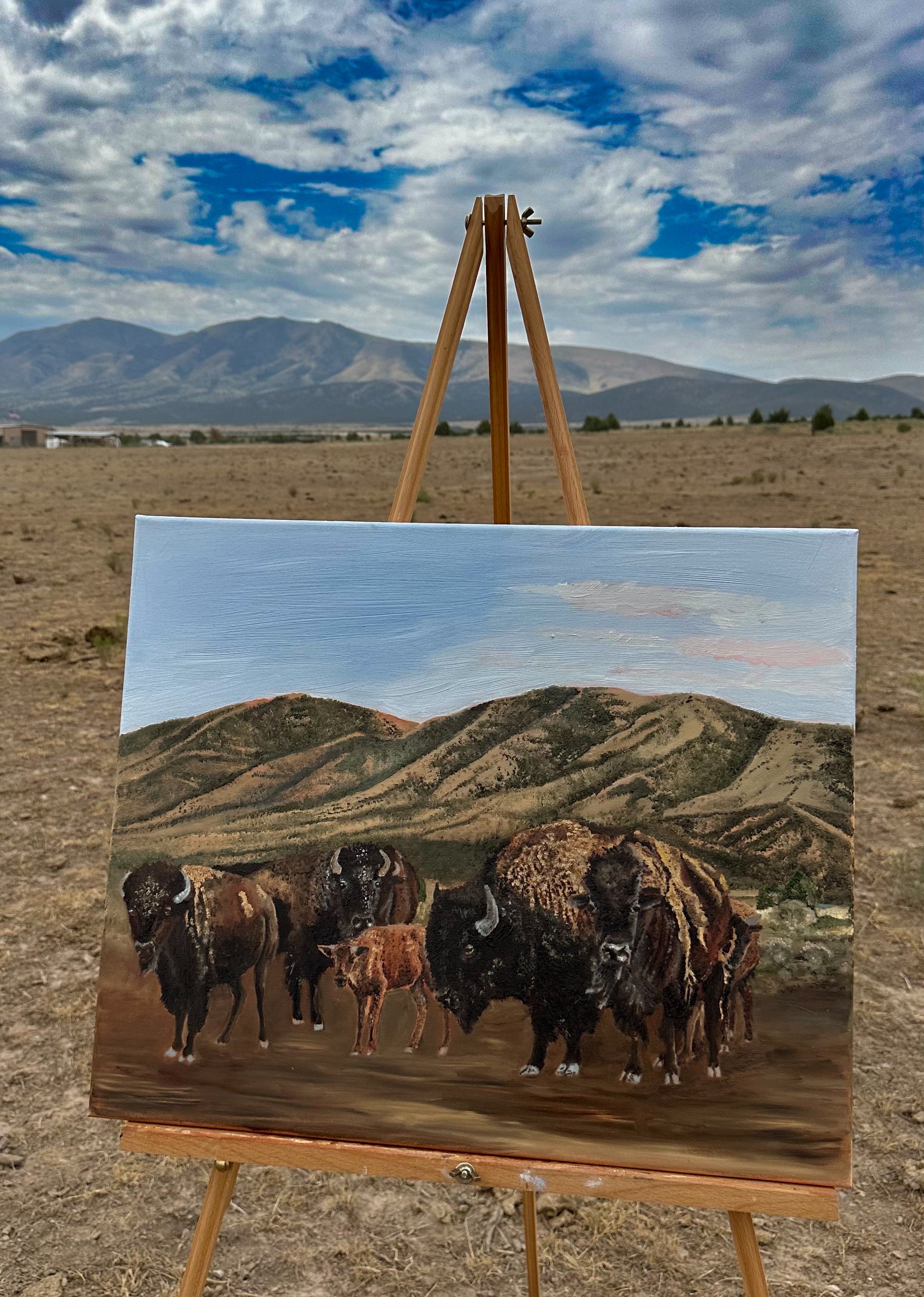 "The Herd" captures the majestic power and unity of a bison group, a symbol of strength and resilience. This artwork thoughtfully portrays the natural dynamics of these iconic animals, embodying their enduring spirit and impressive presence. I painted this out with "The Herd".